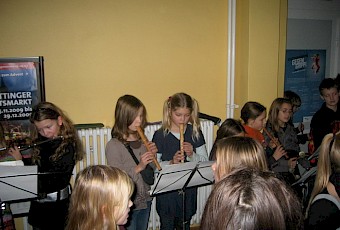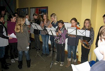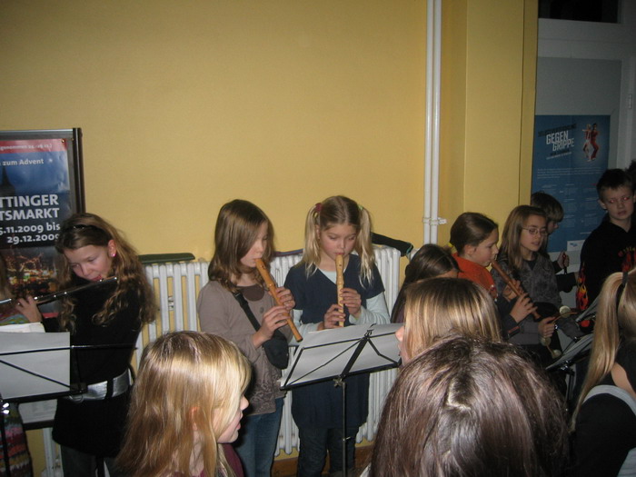 Für die 5. und 6. Klassen ist die Vorweihnachtszeit auch die Zeit des traditionellen Adventsingens. Am 10.12. trafen sich alle Schülerinnen und Schüler bereits vor der ersten Stunde im Erdgeschoss des Kleinen Felix, um in heimeliger Atmosphäre unter dem Adventskranz weihnachtliche Lieder zu singen. Schülerinnen und Schüler der 5bil begleiteten den Gesang mit Quer- und Blockflöten sowie Schellen und Rasseln.
