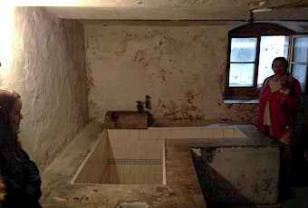 Die erste Station war die „Mikwe“ unter dem Restaurant Löwenstein in der Roten Straße. Die Familie Löwenstein war eine alteingesessene jüdische Familie in Göttingen. Zur Zeit des Nationalsozialismus wurden die Eltern im Rahmen der Judenverfolgung ermordet, während die Kinder sich retten konnten und flohen. Das Restaurant, welches 2014 nach dieser Familie „Löwenstein“ benannt wurde, ist heute das einzige koschere Restaurant in der Region. Im Keller dieses Gebäudes konnten wir erste Einblicke in den Aufbau eines jüdischen Ritualbades – der Mikwe – gewinnen. Während der NS-Zeit wurde diese nicht zerstört, weil sie im Keller eines Privathauses stand und nirgendwo verzeichnet war. Für das orthodoxe sowie für das konservative Judentum ist der Besuch der Mikwe vorgeschrieben und hat daher eine große Bedeutung.