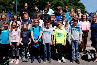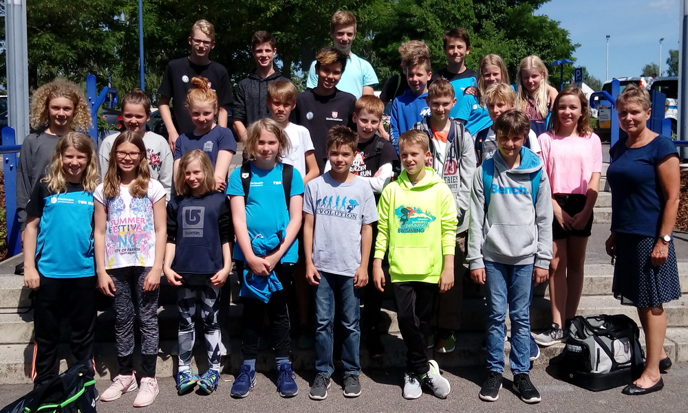 Erfolgreiche Schwimm-Teams beim Landesentscheid Jugend trainiert für Olympia. Mit z.T. unerwarteten Erfolgen kehrten die FKG-Schwimmer und -Schwimmerinnen vom Landesentscheid aus Hannover zurück: Die Jungen der Wettkampfklasse WK II erschwammen den Vize-Landestitel hinter der KGS Hemmingen. Zum Team gehörten André Vollbrecht, Fynn Kunze. Jan Scholz, Jan- Luka Reschke, Max Henrik Niere, Timothy Veldkamp, Kevin Fuhrmann, Tobias Buck-Gramcko und Max Wüllner (verl.).Die Jungen der WK IV überraschten, verbesserten ihre Zeiten gegenüber dem Bezirksentscheid deutlich und belegten ebenfalls den 2. Platz hinter der Humboldtschule Hannover. Es schwammen Michel Metzlaff, Konrad Wehmeyer, Finn Jeep, Nico Siever, Jonas Ahlborn, Norwin-Onnen Mörer, Iven Firneisen, Julius Stieg und Mathis Dümke (Reserve).Überaus spannend verliefen die Wettkämpfe in der WK IV der Mädchen, in der die Entscheidung erst im letzten Rennen fiel. Die Schwimmerinnen setzten sich schließlich mit 4:27, 64 min gegen über den Schülerinnen des Sportinternats der Humboldtschule durch und fahren im Herbst zum Bundesentscheid nach Berlin. Zum Team gehörten Judith Joana Meiners, Paula Bachmann, Johanna Grosse, Silja Ghadimi, Franka Farina Schmidt, Meret Heise, Joy Julie Martens, Friederike Lotta Niere, sowie Stine Rudolph und Lara Teuteberg (beide Reserve) und Clara Kamper (Betreuerin).Herzlichen Glückwunsch an alle Mitglieder der Schwimm-Teams!