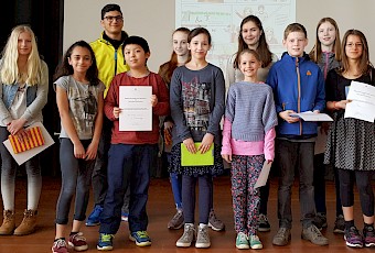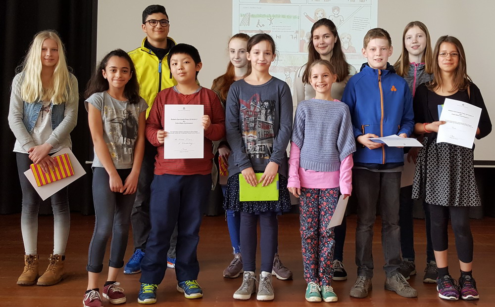 Ein Klassenpreis ging an die 5 mn, Einzelpreise gingen an Jesse Eggers, Thea Marie Burkhardt, Adele Löser und Johanna Blomer (5 bil), Mavie Gunkel und Desirée von Werder (7 bil), Friederike Weibelzahl (8 k2), Georges Bassil (9 k1), Clara Freise (9 bil) und zwei weitere Preisträger, deren Namen wir hier aus den erwähnten Gründen nicht mitteilen können.