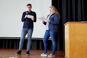 Es konnten wegen der Vielzahl und der Länge einzelner Texte gar nicht alle Beiträge vollständig vorgestellt werden, aber dank der Moderation von Annika Lausch und Jan Germershausen aus der Q I und dank der Vortragenden erlebte das Publikum eine kurzweilige Veranstaltung, der Beifall sprach jedenfalls für sich.