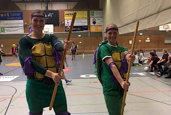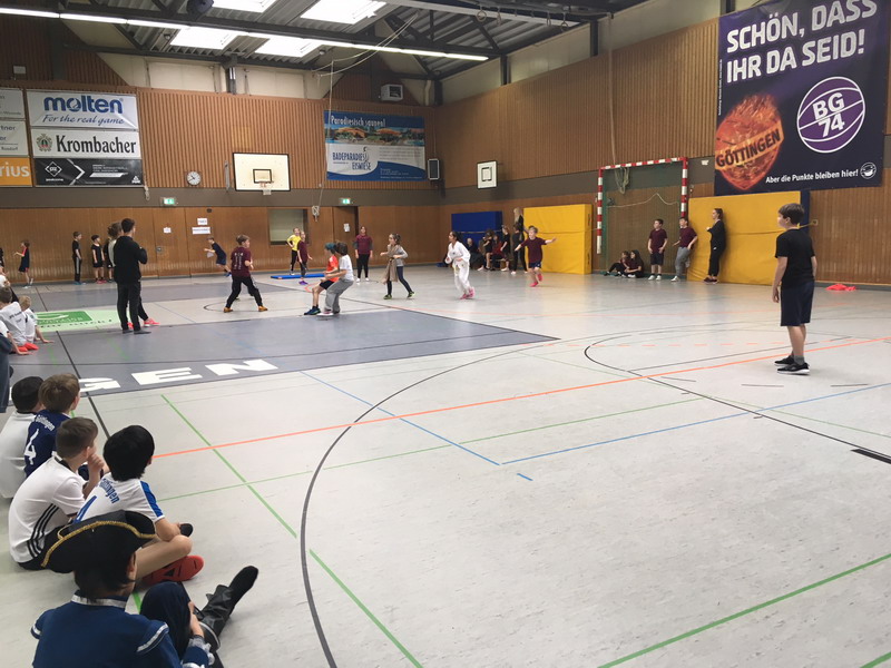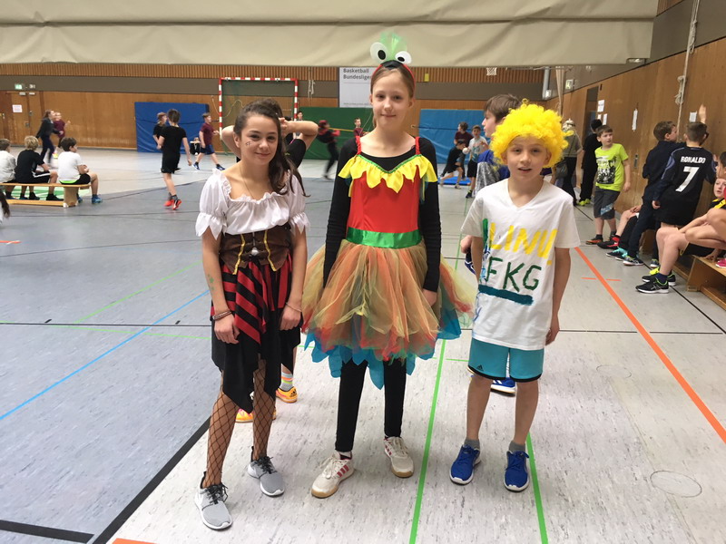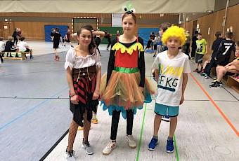 Das diesjährige Rosenmontagsturnier war ein buntes Gewimmel aus einigen Lehrern, Oberstufenschülern sowie den Schülern der 5. Klassen, die sich in verschiedene Verkleidungen und kreative Kostüme, vom Harry Potter bis zum Piloten, gehüllt hatten. Die Schülerinnen und Schüler durften ihr Können im Bereich Ball über die Schnur und Mattenhandball unter Beweis stellen. Die Klasse 5bil erreichte den 1.Platz und wurde mit großem Applaus beglückwünscht. Zudem wurden die besten Kostüme ausgezeichnet. Alles in allem war es ein gelungener Rosenmontag, der mit Sport, Spaß und Spiel alle begeisterte.