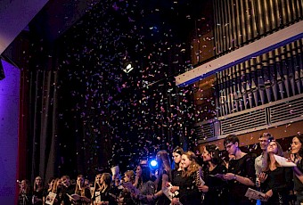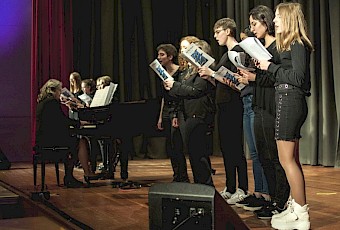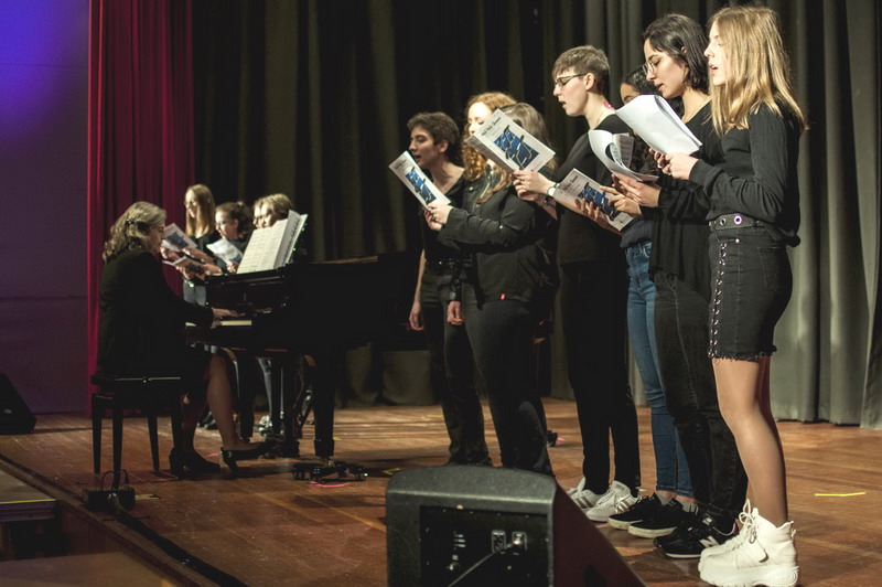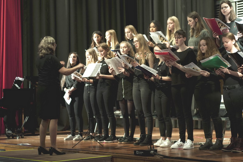 Eines der Highlights war der Mary-Poppins-Chor, ein Projektchor zusammengesetzt aus Schülern der Unterstufe, die mit viel Enthusiasmus Lieder aus dem Musicalfilm „Mary Poppins“ sangen. Das Orchester wagte sich nicht nur an Filmmusik aus „Jurassic Park“ heran, sondern spielte auch den „Pas de Deux“ aus dem Nussknacker von Peter Tschaikowski. Der Oberstufenchor sang Lieder von den Beatles, begleitet von Natalia Forys am Klavier. Gleich zwei Schulbands, „Will Can“ und „L.A.T.“, rockten unter teilweise lautstarken Sympathiebekundungen des jüngeren weiblichen Publikums querbeet von AC-DC über Queen bis hin zu Metallica. Zum Abschluss ihres Auftritts begleiteten Sie den Chor zu „Penny Lane“. Zu diesem Finale kamen noch einmal alle Mitwirkenden auf die Bühne. Mit großem Applaus und einem Konfettiregen gingen die Schulkonzerte 2019 zu Ende.