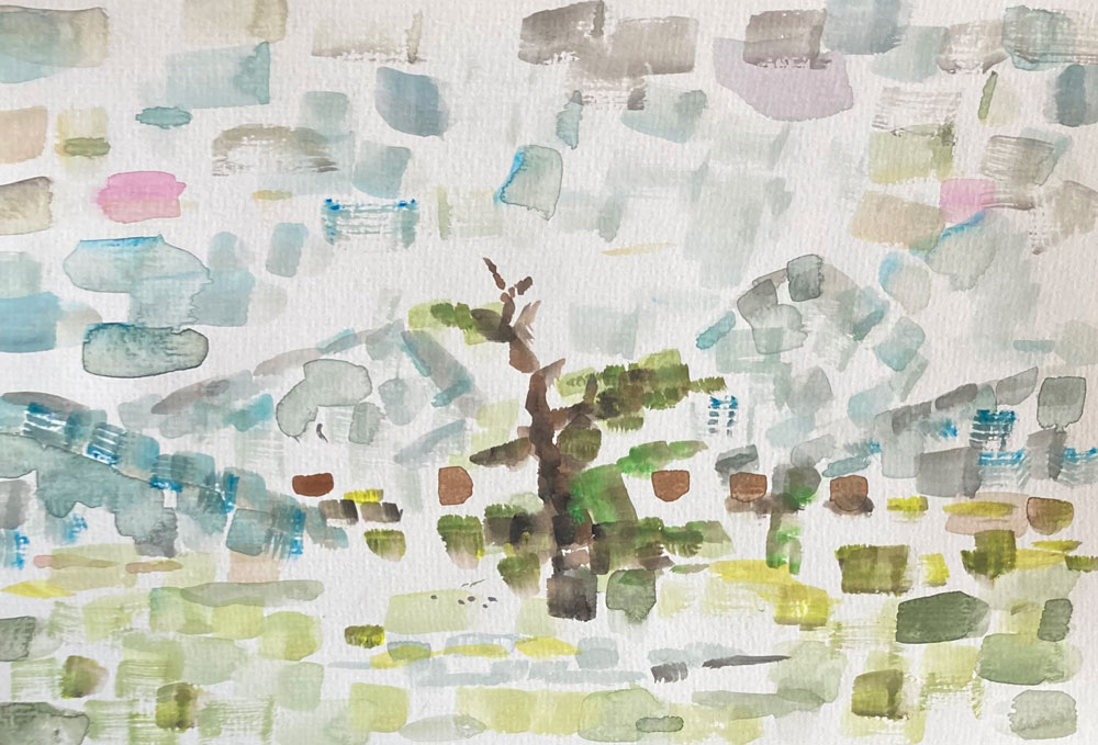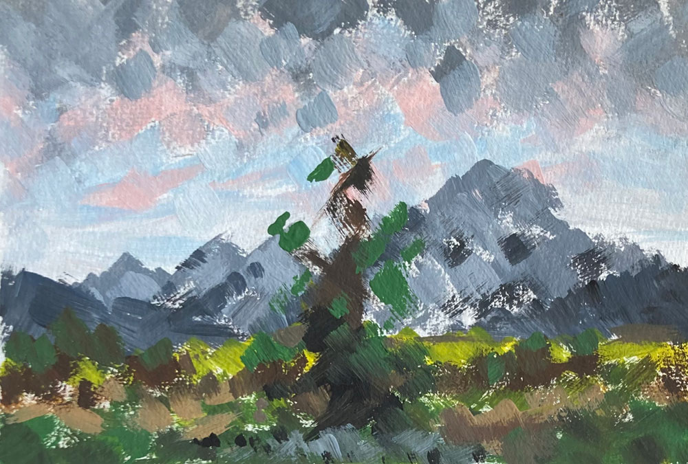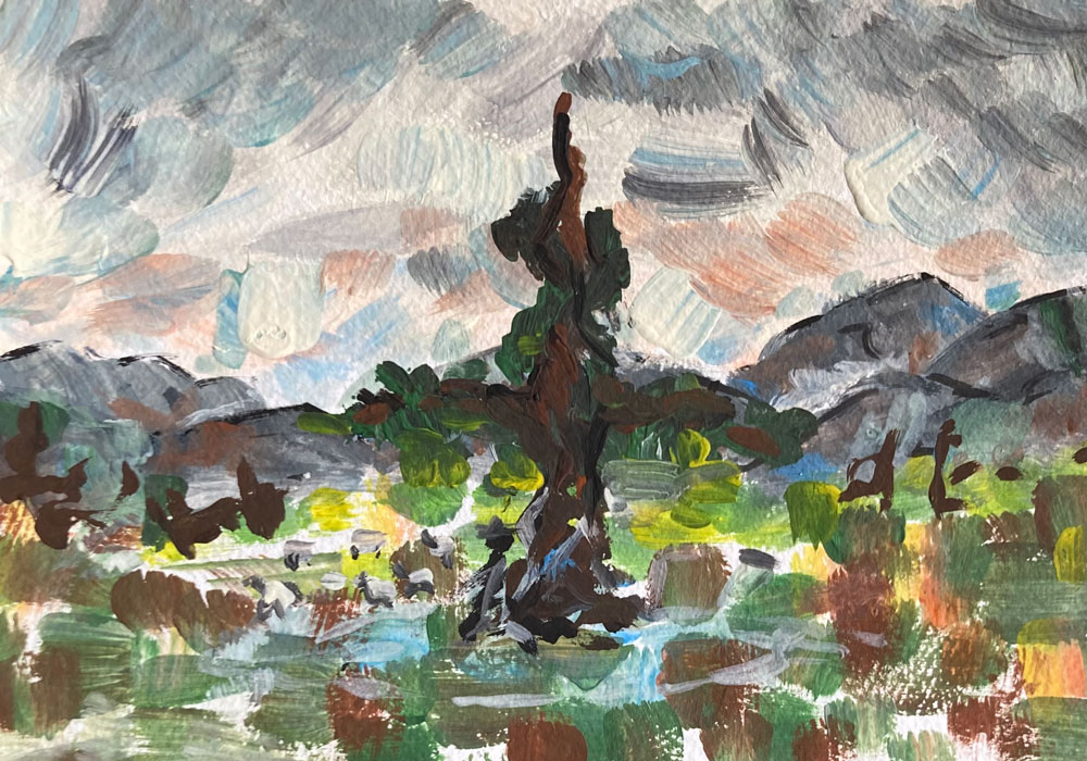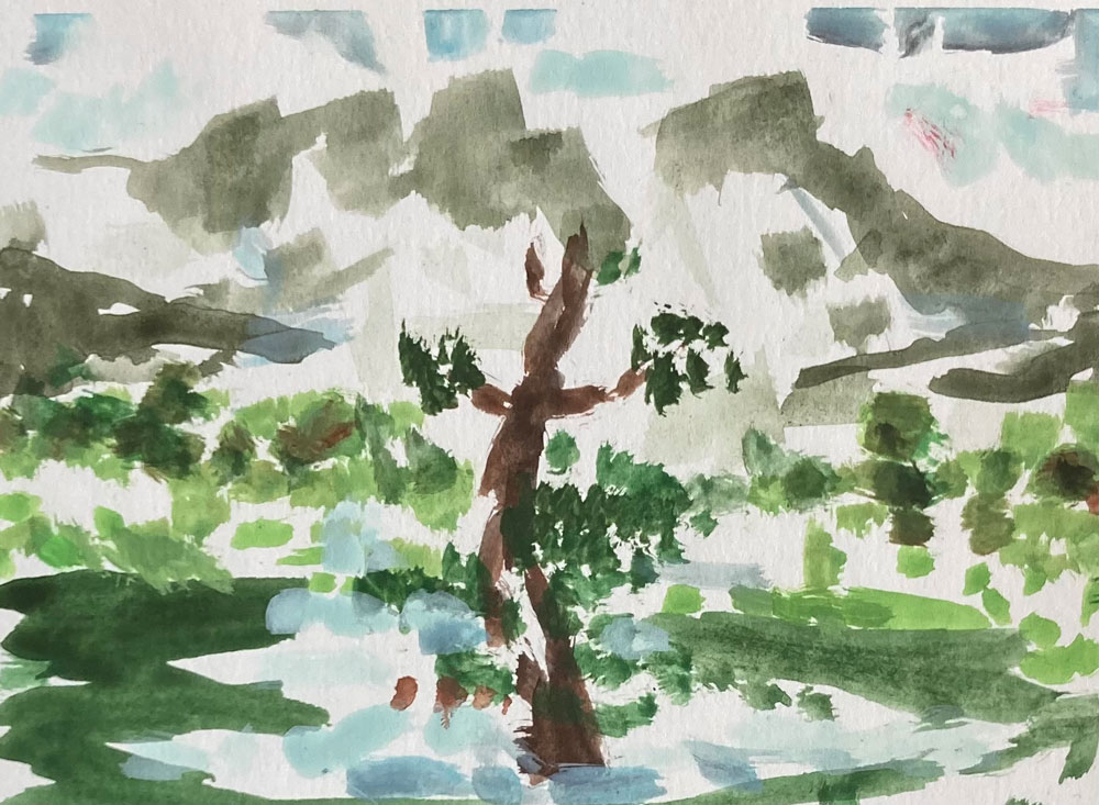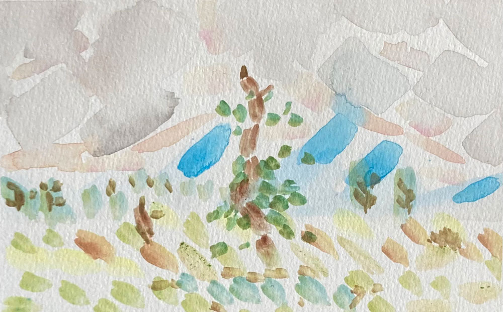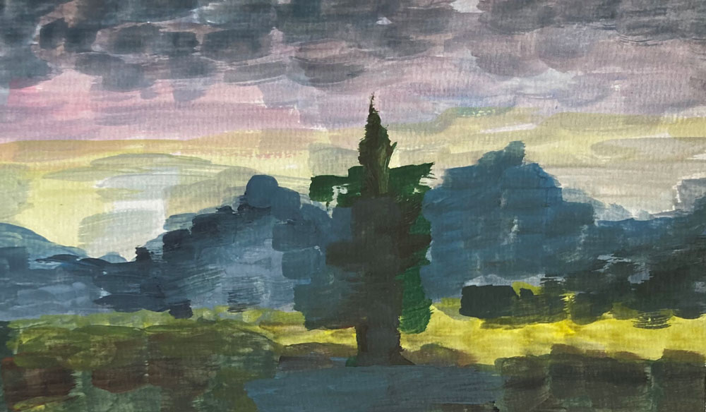 Beispiele dieser kleinen praktischen Fingerübung des KUE1 zeigen, dass der eigene Stil sich nie wirklich verbergen lässt, denn die malerischen Skizzen von Aví Habtom, Sara Hoyos Herrera, Jette Laube, Nora Amara, Amalia D ´Aprano, Amelie Faulstich, Joana Kästner, Valeria Lässig, Laura Petrovic und Theodor Rust würden selbst Cézanne applaudieren lassen.