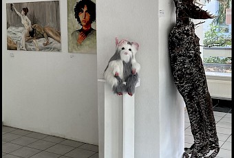 Junge Kunst braucht Raum, und zwar nicht nur in der Schule, sondern auch im öffentlichen Raum. Um einer Handvoll sehr talentierten Menschen die Möglichkeit zu geben, ihre Kunstwerke auch einmal außerhalb der Schule zeigen zu können, haben Schüler und Schülerinnen aus Kunstkursen des Felix-Klein-Gymnasiums unter der Leitung von Barbara Rexmann und Kristina Popp einen leer stehenden Geschäftsraum für eine temporäre Nutzung als Kunstgalerie umgestaltet.