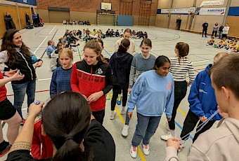 Die Handballerinnen des Felix-Klein-Gymnasiums haben beim Schulsportwettbewerb „Jugend trainiert für Olympia“ in der Wettkampfklasse IV beim Landesfinale in Barsinghausen den ersten Platz belegt. In einem sehr ausgeglichen Turnier wurde im ersten Spiel ein Unentschieden (9:9) gegen das Hölty-Gymnasium Wunstorf, den späteren Zweitplatzierten, errungen. Angeführt von Frida Sachse Hernandez setze sich die Mannschaft anschließend mit 14:8 souverän gegen das Gymnasium Lohne durch. Für das letzte Spiel gegen das Gymnasium Buxtehude Süd war somit klar, dass ein Turniersieg nur über die Tordifferenz möglich ist. In einem furiosen Spiel, in dem Torhüterin Lilly Ohle im Tor glänzte, drehten die jungen Göttingerinnen auf und konnten einen deutlichen 16:5 Sieg einfahren, so dass die Freude bei der Siegerehrung keine Grenzen kannte. Die intensiven Vorbereitungen in der Handball AG haben somit Früchte getragen und führten zu einer geschlossenen Mannschaftsleistung am Turniertag sowie dem Titel 'Landessieger Niedersachsen 2023'.