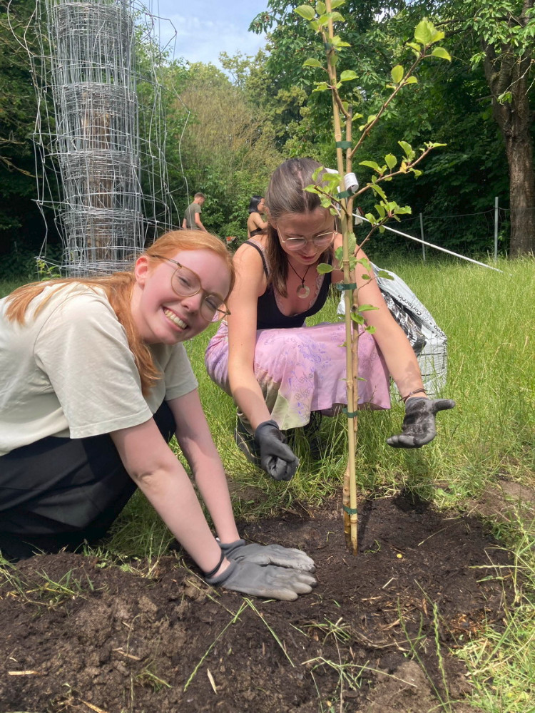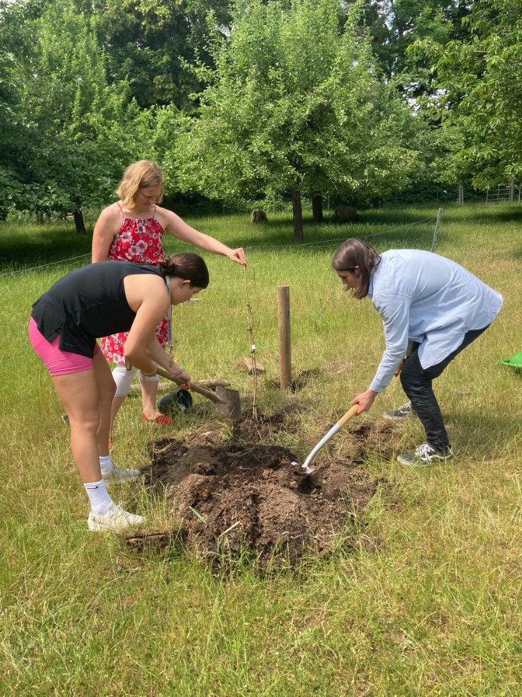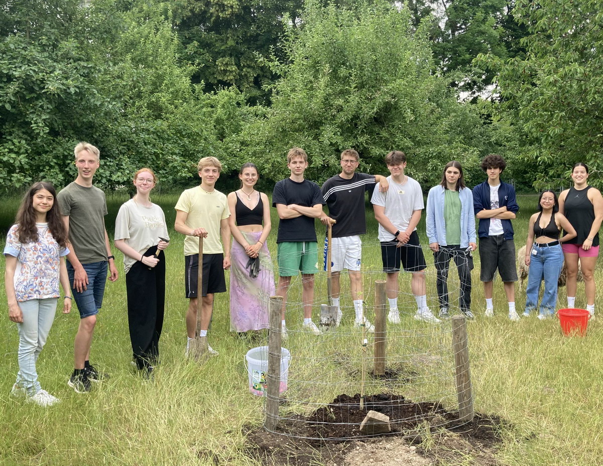 Garten-AG, WPU „Ökosystem Garten“ und der Q1-Biotutorkurs haben diese Woche zwei neue Apfelbäume auf die Streuobstwiese gepflanzt. Die Bäume „roter Boskoop“ und „Korbinian“ sind Spenden des Abiturjahrgangs von 1988.