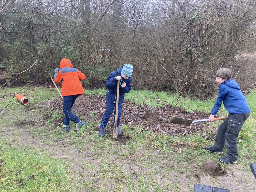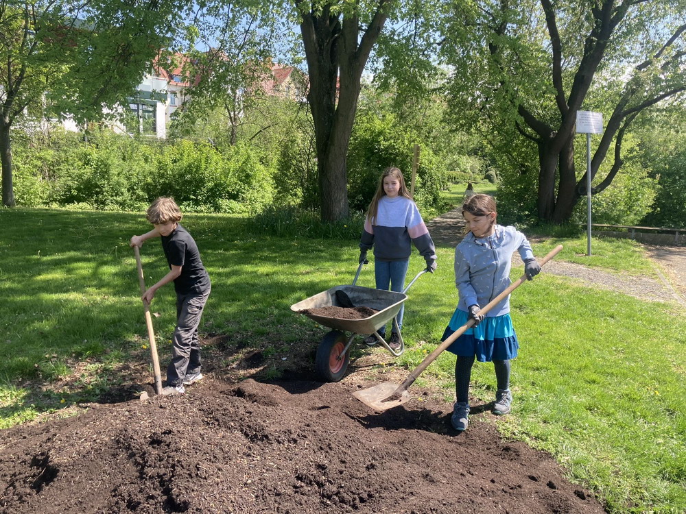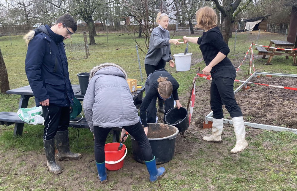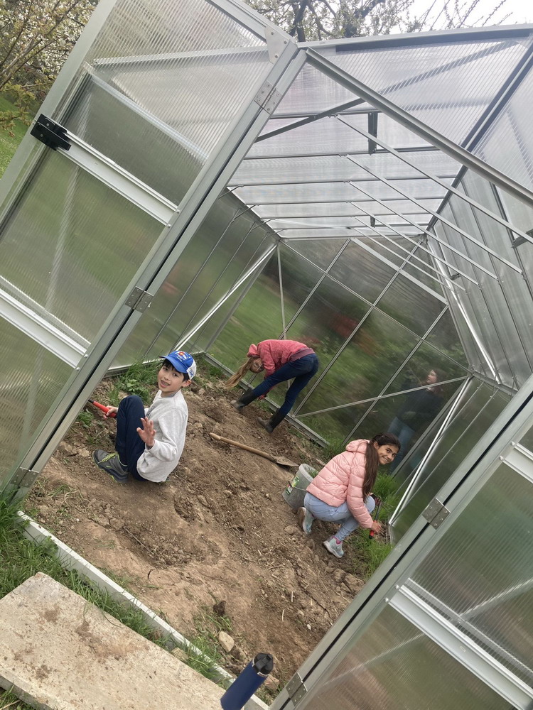 Unser Schulgarten ist wieder ein Stück schöner geworden. Nach vielen Arbeitseinsätzen bei z.T gruseligem Wetter und viel Engagement aus der ganzen Schulgemeinschaft sind jetzt die ersten Pflanzen in das neue Gewächshaus eingezogen.