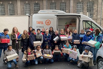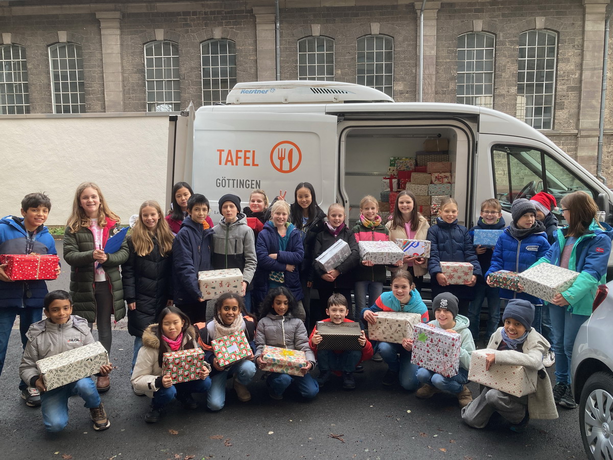 Wie in jedem Jahr fand am FKG wieder die Weihnachtspäckchen-Aktion zugunsten der Göttinger Tafel statt. Es kam die stattliche Anzahl von weit über 400 Päckchen zusammen. Ein ganz herzlicher Dank an die Schülerinnen und Schüler und deren Eltern, die so großzügig gespendet haben. Ein weiterer Dank geht an Frau Juhle, die diese Aktion wieder perfekt organisiert hat.