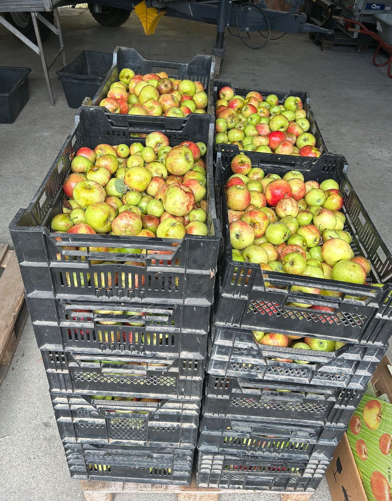 Ein gelungener Erntetag, auf den mit Apfelsaft angestoßen wurde.
