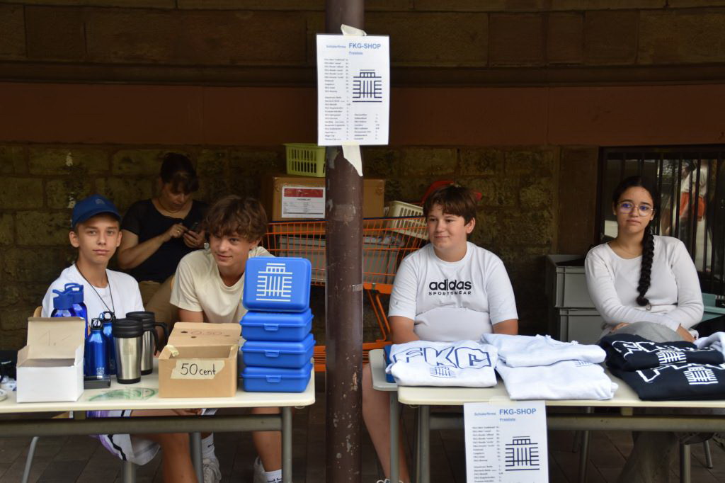 Bei hervorragendem Wetter erlebten unsere neuen Schülerinnen und Schüler der kommenden 5.Klassen ihren ersten Schultag am FKG. Nach einer Begrüßung in der Aula wurden sie - wieder begleitet von unserem Bläser-Ensemble - zum Kleinen Felix geführt, mitten durch unsere Schülerschaft, die ein durchgehendes Spalier bildete und den Neulingen kräftig applaudierte. Während die neuen Mitglieder der FKG-Schulgemeinschaft ihre Klassenräume in Beschlag nahmen, bot sich den Eltern die Gelegenheit, bei Kaffee und Kuchen ausgiebige Gespräche zu führen und sowohl den FKG-Förderkreis als auch den FKG-Shop kennenzulernen.