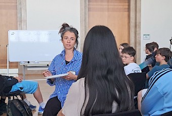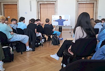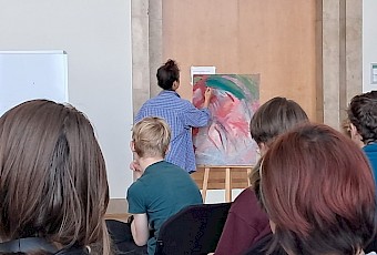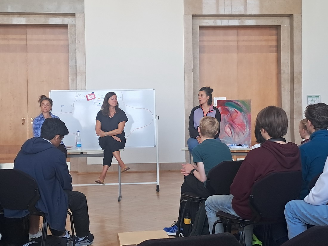 Schon zum dritten Mal zeigte der Verein Spielraum e.V. sein Theaterstück „Schöne Menschen essen nicht“ in der FKG-Aula. Die Schüler und Schülerinnen des 8. Jahrgangs folgten gespannt der Protagonistin, die sie auf eine ganz persönliche Reise durch ihre Vergangenheit mitnahm. Ihre Wege führen vorbei an perfekten Körpern in den Medien, der Suche nach Gleichgesinnten, einer engen und verhängnisvollen Freundschaft und der immerwährenden Frage "Wer bin ich?". Mit dem Theaterstück versucht Spielraum e.V. die Erkrankung Essstörung zu thematisieren. Das ihnen dies gelungen ist, zeigten die vielen Fragen der Anwesenden in der Nachbesprechung, die durch eine Theaterpädagogin und eine Mitarbeiterin der therapeutischen Frauenberatung begleitet wurde. Ermöglicht wurde die Veranstaltung durch den Förderkreis des Felix-Klein-Gymnasiums, der dankenswerterweise die Kosten der Aufführung übernahm.