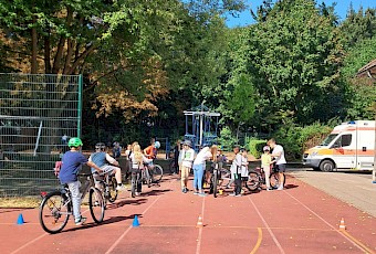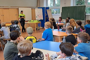 Anfang September hat der gesamte Jahrgang 5 wieder das von der Polizei Göttingen angebotene und organisierte 6-stündige Verkehrsunfallpräventionsprojekt NEUE WEGE klassenweise durchlaufen. Das Projekt besteht insgesamt aus sechs 45-minütigen Modulen, die vor allem dazu dienen, die Fünftklässler für Gefahren im Straßenverkehr zu sensibilisieren und Verkehrsunfälle zu vermeiden. Auch Themen wie Erste Hilfe, das richtige Verhalten und die richtig Ausrüstung als Fahrradfahrer, der tote Winkel beim LKW oder auch der Anhaltweg eines Autos bei unterschiedlichen Wetterlagen und auf unterschiedlichen Straßenlagen wurden im Rahmen des Projekts thematisiert und durch praktische Übungen mit den Fünftklässlern besprochen. Ein guter Beitrag zur Sicherheit auf dem Schulweg.