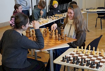 Einige Köpfe rauchten fast zwei Stunden bis zur Entscheidung. Schließlich gewannen Max Tobias Ferdinand von Richthofen und Joona Erik Kirchner ihre Partien. Chaithra Sree Dasari sowie Lias Maraun erreichten jeweils ein Remis. Aber alle, auch die, die keinen Sieg oder Remis erreicht haben, zeigten hohe Konzentration und viel Spielfreude und waren begeistert dabei. Auch unser ehemaliger Schulleiter Herr Brüggemann gab sein Können zum Besten.