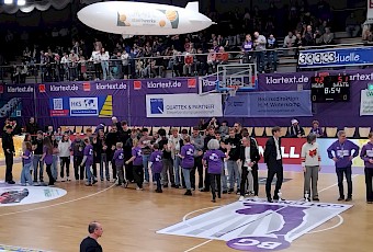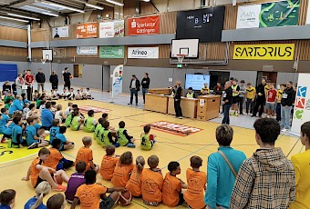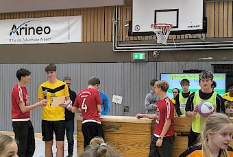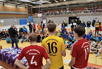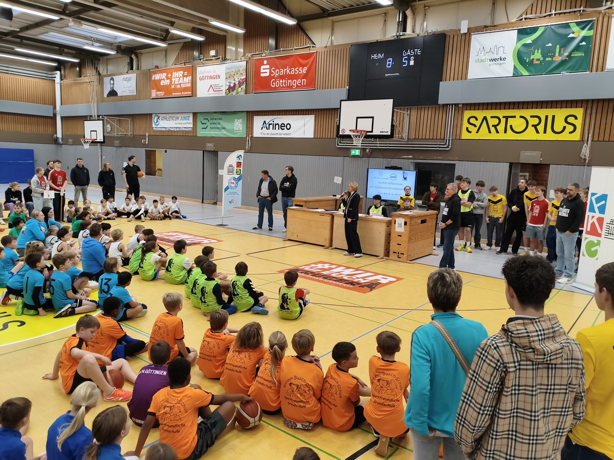 Tradition und Kooperation leben weiter: Unter Federführung von Andreas Scheede lud die BG Göttingen in Kooperation mit dem ASC Göttingen und unserer Schule zum Sparkassen-Grundschulliga-Tag Göttingen 2025 ein. Rund 12 Grundschulteams aus Stadt und Landkreis Göttingen folgten der Einladung. Auch in diesem Jahr stand der Tag ganz im Zeichen des "Miteinanders", denn unsere beiden Q1-Sport-eA-Kurse von Frau Klecka und Frau Merten übernahmen Verantwortung für die Turnierorganisation einschließlich Teambetreuung und Schiedsrichtertätigkeiten. Ein besonderes Highlight war der Besuch des Pro-A-Trainers Fabian Strauß, der die Kinder zu Fairplay und Höchstleistung motivierte und den FKG-Schülerinnen und -Schülern für ihr Engagement dankte. Ende Dezember wurden die vier Preisträger-Grundschulen sowie die FKG-Sportlerinnen und -Sportler schließlich im Rahmen eines BG-Heimspiels geehrt. Ein herzlicher Dank gilt allen Beteiligten, insbesondere Andreas Scheede. Wir freuen uns schon auf das nächste gemeinsame Event.