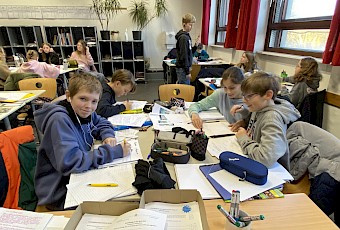 Nicht nur das Thema war ein anderes, auch das Endprodukt war in diesem Fall für viele etwas völlig Neues: die Ergebnisse der Forscherfragen wurden in individuellen Leporellos festgehalten, die nun in der Nachbereitungsphase noch präsentiert werden. Neben den im Jahrgang 5 bereits erprobten Lesestrategien stand in diesem Jahr auch die Strategie des Texteschreibens mit im Fokus. Die individuelle und kreative Gestaltung der Leporellos ist dabei natürlich nicht zu kurz gekommen; in allen Klassen wurde fleißig geschrieben, gemalt, geschnitten und geklebt und die Endprodukte können sich wirklich sehen lassen.