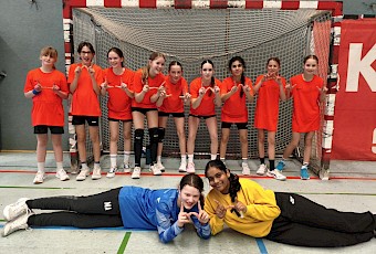 Unsere FKG-Handballerinnen der U14 kehren mit einem schönen zweiten Platz vom Bezirksvorentscheid zurück. Bereits Anfang Dezember hatten sich die Spielerinnen beim Kreisentscheid gegen vier Schulen aus Göttingen durchgesetzt, so dass wir mit Vorfreude und etwas Nervosität die Reise zur nächsten Runde in Northeim antraten. Dort trafen wir im ersten Spiel auf die Oberschule Hattorf. In der ersten Halbzeit war noch ordentlich Sand im Getriebe, wohl auch weil einige Spielerinnen nach den Weihnachtsferien erst kürzlich wieder in das Training einsteigen konnten. Mit zunehmender Spieldauer wurde das Zusammenspiel jedoch flüssiger und wir konnten uns mit 15:9 durchsetzen. Folglich war klar, dass es gegen das Corvinianum um den Turniersieg gehen würde. Unsere Handballerinnen starteten stark und schenkten dem Favoriten nichts, dennoch mussten wir in der zweiten Halbzeit den schwindenden Kräften Tribut zollen und uns leistungsgerecht mit 12:19 geschlagen geben. Wir haben zwar nicht das Turnier gewonnen, aber an reichlich Erfahrung und schönen, verbindenden Momenten als Schulhandballteam.