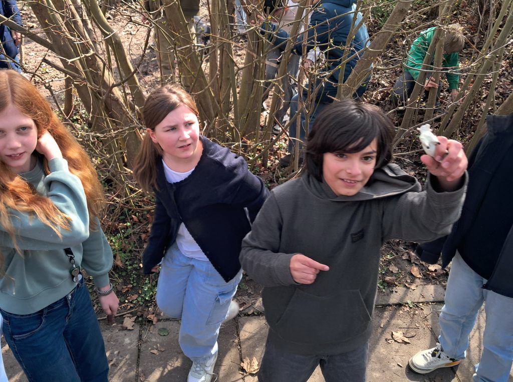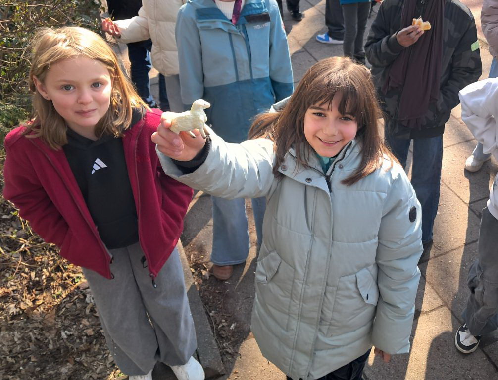 Auch 2026 ging es an unserer Außenstelle wieder auf Osterhasensuche. Insgesamt wurden 360 Schokohasen auf dem Schulgelände versteckt und es wurde wieder fleißig gesucht. Wer dabei einen kleinen Hasen oder ein kleines Schaf auf dem Schulhof gefunden hatte, bekam im Tausch dafür eine Spielesammlung als Finderlohn. Die Schülerinnen und Schüler waren wieder mit Begeisterung bei der Sache.