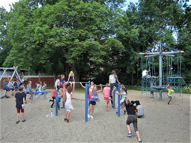 Im Kleinen Felix gibt es eine viel genutzte Lernwerkstatt. Im Pavillon stehen ein Aufenthalts- und Freizeitbereich und eine Mensa zur Verfügung. Unsere Schülerinnen und Schüler haben im Kleinen Felix auch eine eigene Bücherei, die von den „Bücherei-Kids" betreut wird. Der Schulhof lädt in den Pausen mit zahlreichen Ballspielplätzen, Spielgeräten, einer Spielekiste und einem Erlebnisgarten mit Slackline-Möglichkeiten zum Austoben und Spaß haben ein.