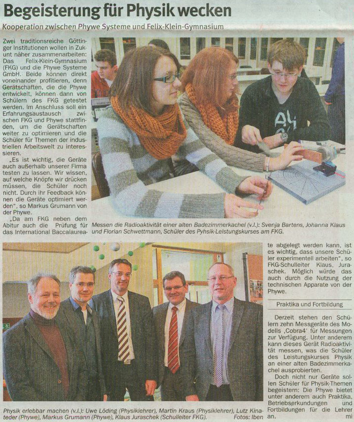 23.01.2013 - Auch der Blick berichtet über unsere Partnerschaft mit Phywe