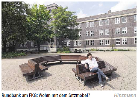 (...) Ungewiss ist immer noch, ob die alte, oft genutzte Rundbank, die vor der Sanierung auf dem Marktplatz stand, wieder in der Fußgängerzone aufgestellt wird. Derzeit steht sie auf dem Schulhof des Felix-Klein-Gymnasiums (FKG). Ginge es nach der Stadtverwaltung, wird sie dort auch bleiben: „Auf dem Schulhof erfüllt sie ihren Zweck sehr gut", sagt Johannson. „Wenn die Ratspolitik die Bank aber mitten in der Fußgängerzone wiedersehen möchte, dann wird man auch dafür sicher eine Lösung finden." Er verweist auf einen Vorschlag von Stadtbaurat Thomas Dienberg: „Erst einmal die 16 bestellten, neuen Bänke aufstellen, um dann zu sehen, ob oder gegebenenfalls wie die alte Rundbank in dieses neue Bänke-Angebot hineinpasst." (...)