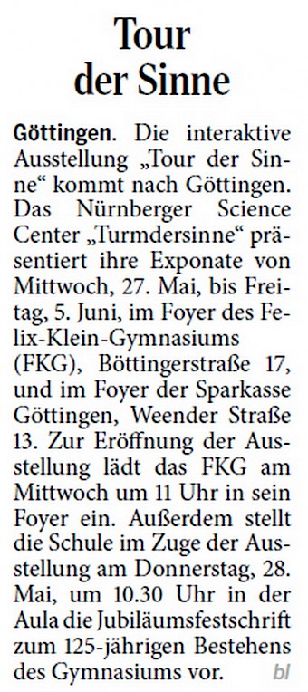 23.05.2015 - Ankündigung: 'Tour der Sinne' am FKG