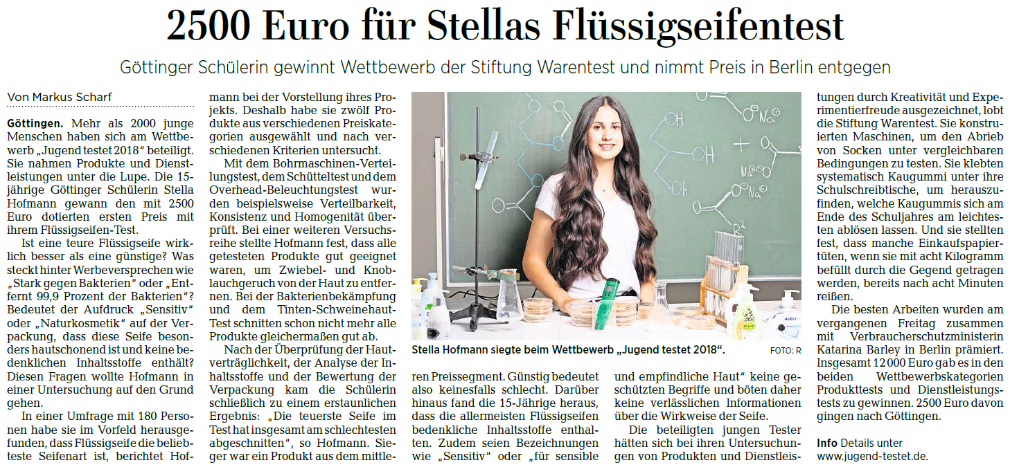 26.06.2018 - Stella Hofmann gewinnt Wettbewerb der 'Stiftung Warentest'